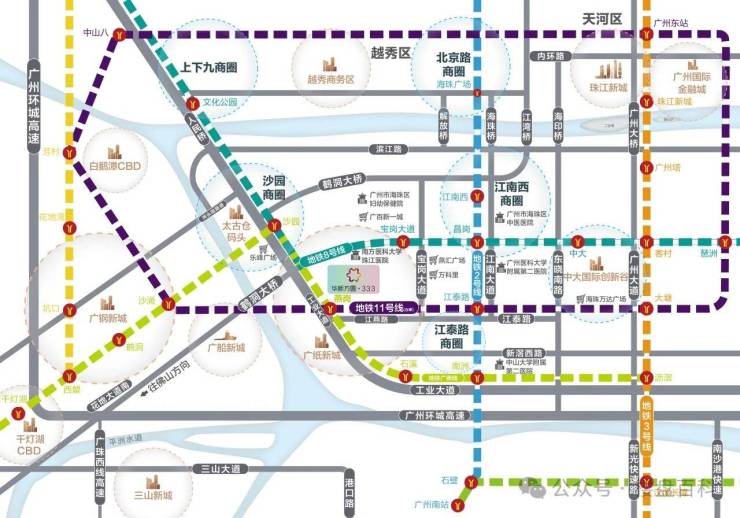 华新方圆·333 位于 地铁广佛线与广州地铁11号线交汇站燕岗站D出口上盖,交通优势无可比拟。