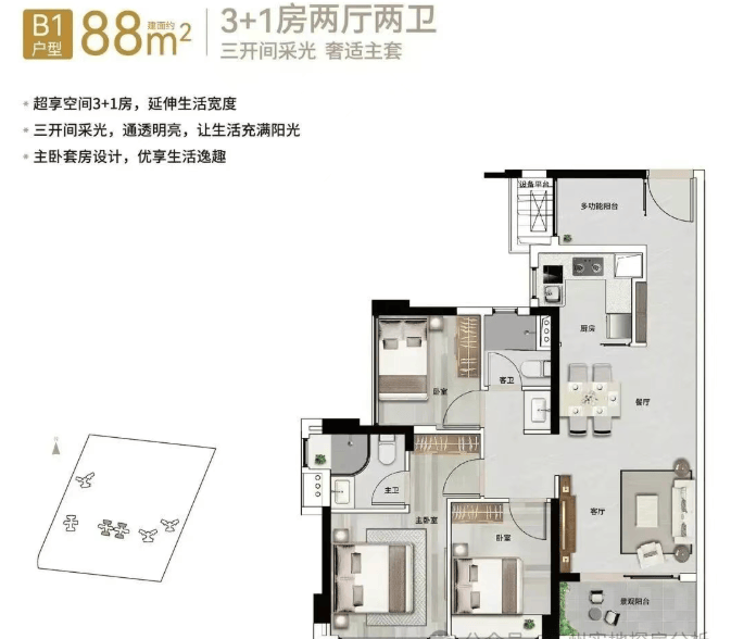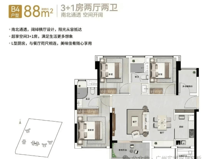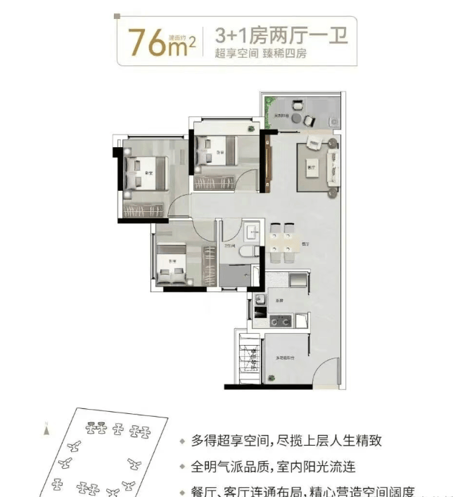 珠江花城提供的户型包括76-88-117-119-140-194平方米不等,能够满足不同家庭结构的需求。特别是76平方米户型可以做到3+1房,88平方米户型则实现了南北对流的3+1房2卫设计,体现了高效的空间利用。