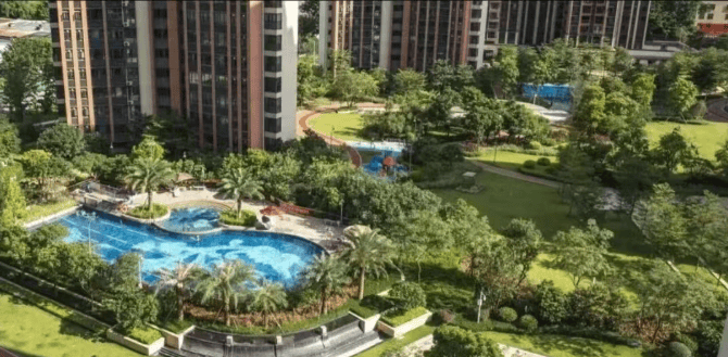 小区内部环境优雅,拥有约10万平方米的围合式园林,其中五六期更有约5.2万平方米的央景园林,楼间距达到140-145米,确保了良好的采光与通风条件。社区内还设有蔚蓝泳池、跑道、儿童乐园等休闲娱乐设施,大大提升了居住舒适度。