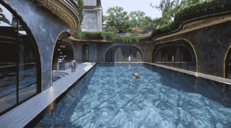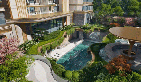 社区内部依据低密居住理念打造园林景观,合理布局绿植、休闲空间与景观节点,结合岭南气候特点选择适配植被,兼顾遮阳、观景与休闲功能,形成层次丰富的内部生态环境。社区内设置适宜的休闲活动空间,满足居者日常散步、休闲放松的需求,实现外部江景资源与内部园林景观的双重呼应,打造内外双园的生态居住格局。整体生态环境静谧宜人,既远离城市喧嚣,又能近距离感受自然绿意,为居者提供康养宜居、放松身心的居住体验,充分彰显高端生态住区的居住价值。