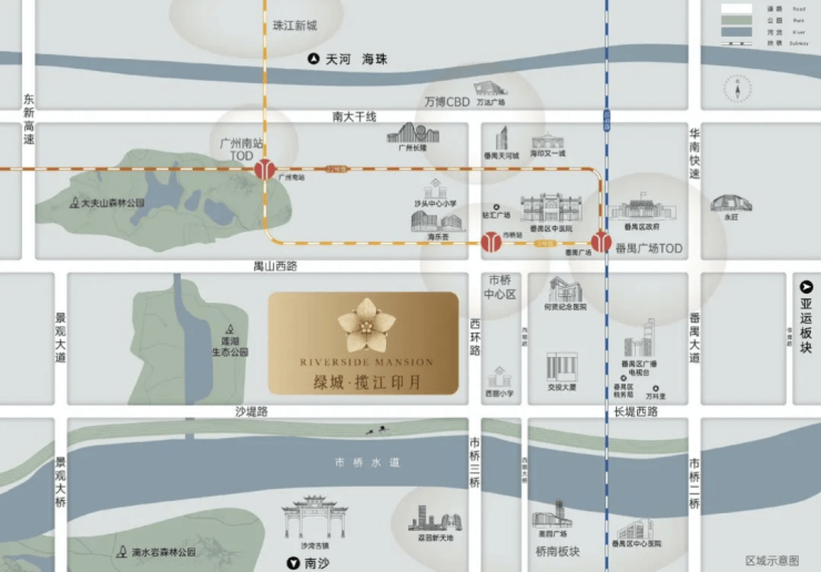 项目位于广州番禺市桥河畔,周边生态环境丰富,背靠大夫山森林公园、莲湖湿地公园及滴水岩森林公园,构成天然绿色屏障。地段优势显著,市桥板块为番禺城区生态居住高地,同时享受核心商务区发展红利。未来区域规划完善,商业、教育、交通配套持续落地,居民可享受便捷生活与潜在升值空间。依托绿城品牌开发及高端物业管理经验,项目在城市中轴发展中占据先机,成为未来片区高端住宅标杆。区域内生态与城市机能融合,使居住环境兼具宜居与投资潜力,为购房者提供长期价值保障。