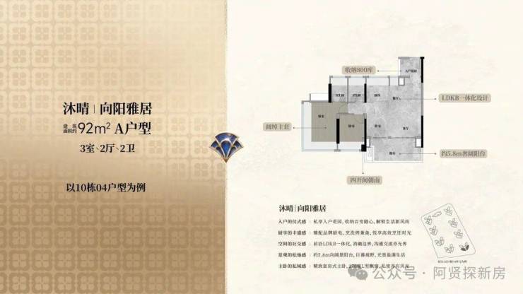 朝向:三卧室南向,客厅东南向,全明通透,采光面超 10 米