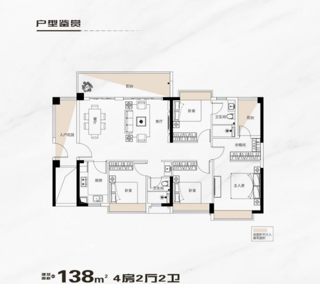 云起兴泰85-135平方米奢装洋房产品户型:均为高拓展面积户型,入户花园、阳台、飘窗、卧室、露台等均有赠送空间,满足居者使用需求。