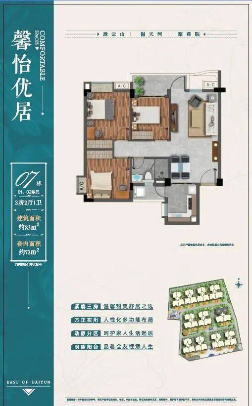 荣升·珑樾主力户型为建面约64至119平方米的低密小洋楼产品,层高合理,空间布局紧凑高效。户型设计强调通透性与实用性,普遍采用双阳台配置,实现客厅与卧室的双向采光通风。小面积段适合单身精英或年轻家庭,大面积则满足改善型需求,兼顾功能分区与居住舒适度。所有户型均以精智理念打造,最大化提升空间使用效率,契合现代都市人群对“小而美、精而雅”居住方式的向往。