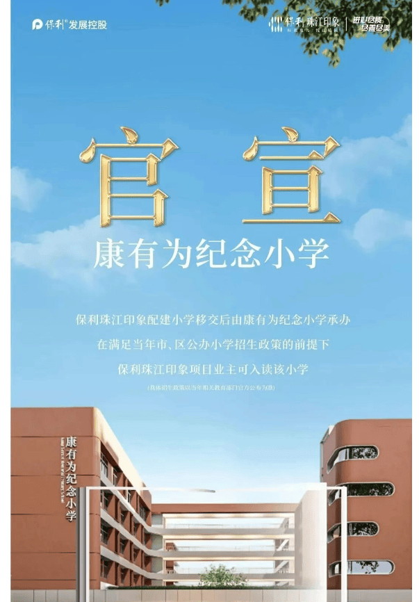 对于重视孩子教育的家庭来说,保利珠江印象无疑是一个理想的选择。小区内配建了一所幼儿园,南地块的保利珠江天悦则拥有由康有为纪念小学承办的24班公立小学,作为省一级名校,其教学质量备受认可。此外,周边规划有45班完全中学,形成了一个完整的教育链条,让孩子们在家门口就能享受到优质教育资源。
