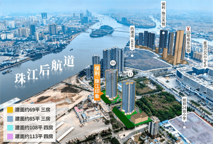 坐落在广州荔湾区东沙国际商贸港片区北地块,保利珠江印象不仅享有得天独厚的地理优势,还紧邻广州幸福湾,尽管部分江景被遮挡,但其独特的地理位置为居民提供了独一无二的生活体验。项目距离在建的地铁10号线东沙站约700米,预计2025年开通后,将极大提升居民出行的便利性。周边规划有45班完全中学和一所由康有为纪念小学承办的公立小学,为孩子的教育保驾护航。同时,这里也是未来城市天际线的重要组成部分,承载着无限可能。
