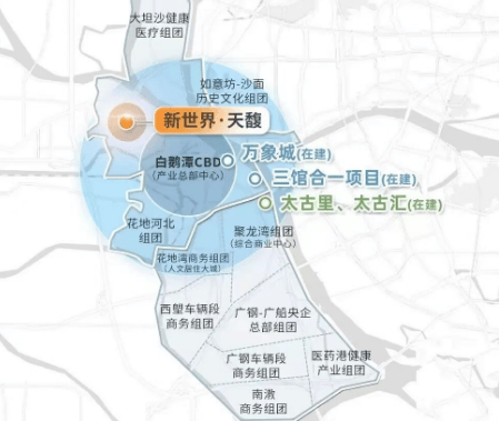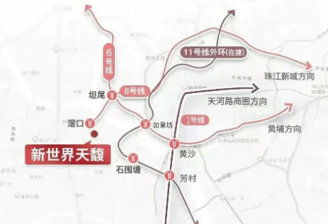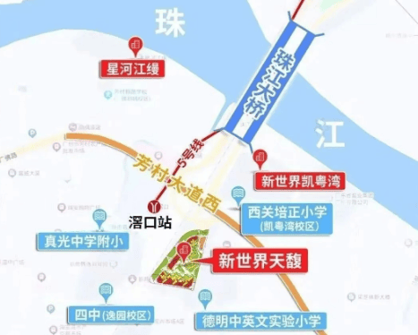 新世界天馥位于广州市荔湾区滘口板块,紧邻正在蓬勃发展的白鹅潭CBD。这里不仅汇聚了众多商业设施,如华润万象城、太古里和太古汇等,还拥有丰富的文化资源,“三馆合一”项目也即将落成。交通方面,项目距离地铁5号线的首发站——滘口站仅400米,步行6分钟即可到达,为居民提供了便捷的城市通勤条件。