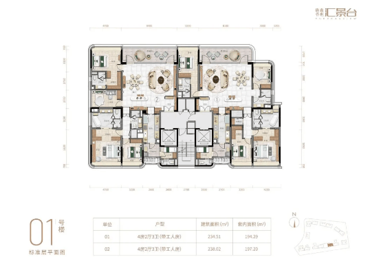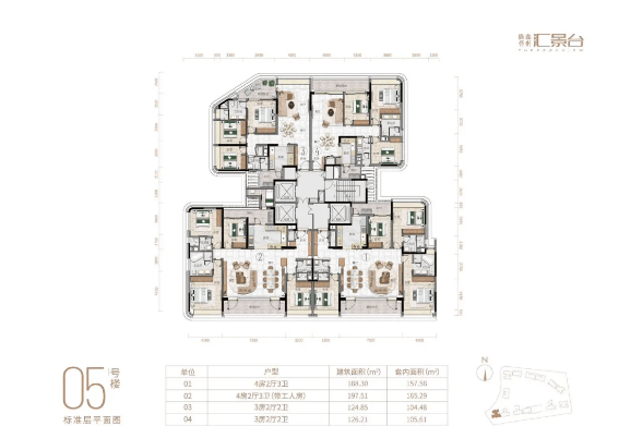 项目户型以 “顶奢改善” 为核心,124-290㎡三至五房覆盖进阶到终极改善需求,实用率 82-84%,12 层小高层设计保障南北对流与景观视野,3.15 米层高(部分户型)搭配弧形元素设计,细节彰显高端。主力户型亮点突出: