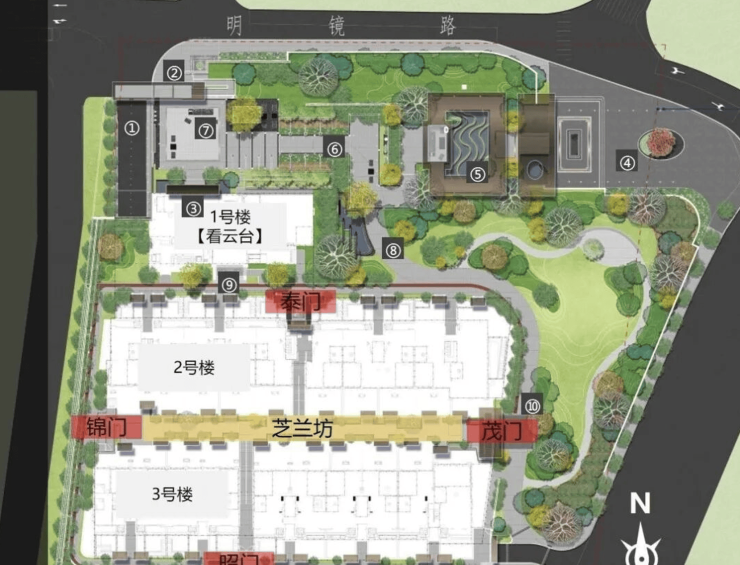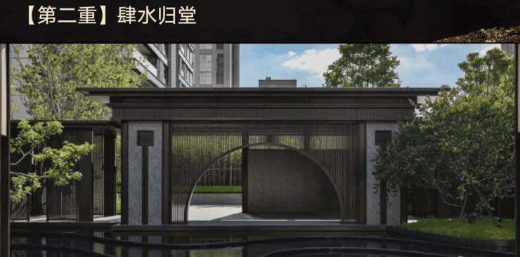 建筑设计由Armani艺术中心、澳门中心同源团队操刀,联合汉森伯盛、纵横设计等大师团队,打造新中式礼序范本。建筑采用古代建筑屋顶最高礼序“重檐塔冠”设计,搭配4.6米高玻璃幕墙,是广州目前唯一采用耐腐蚀、抗风沙、隔音性强的氟碳喷涂铝板的项目,既彰显东方美学底蕴,又兼具现代建筑的质感与实用性。园林设计由上市公司普邦团队执笔,引“云山珠水”入院,以“一峰一轴连两脉”的布局,打造“归家五重景”,将自然生态与人文礼序完美融合。