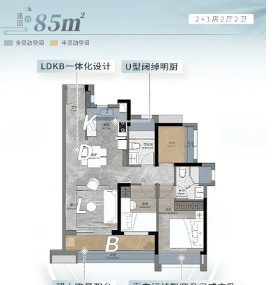 越秀·天悦云湖的主力户型设计充分考虑了不同家庭结构的需求,涵盖了从刚需到改善的全方位产品线。项目最新推出的三期产品,使用率突破100%,部分户型甚至达到107%,这一数据在白云湖板块乃至整个广州市都属于顶尖水平。以建面约84平方米的三房两厅两卫为例,该户型采用了南向双瞰景阳台设计,U型明厨搭配瞰景餐厅,空间布局合理,动静分区明确。主卧套房设计宽敞舒适,南北对流,四季享新鲜氧气,居住体验极佳。