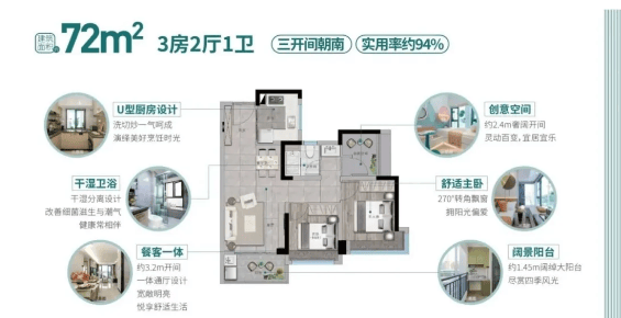五、户型产品:93.6% 高得房率,空间利用率惊艳
