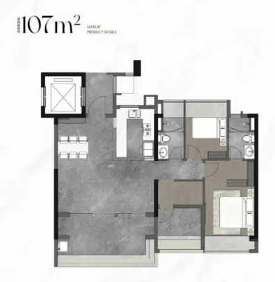 核心亮点:纯板楼 2T3 户设计,私密性与舒适度升级;南向面宽超 13 米,客厅与三间卧室朝南,宽景阳台约 7 米,部分户型可看花地河景观;LDK 一体化(客厅、餐厅、厨房联动)打造约 40㎡社交空间,适合家庭聚会;主卧套间带观景飘窗,双卫均为明卫,居住品质对标高端改善盘,适合 “重视空间尺度” 的三口之家。