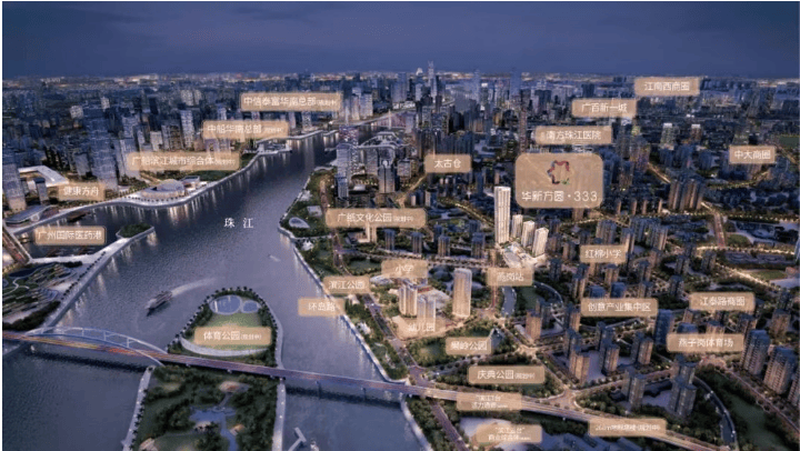 华新方圆・333 雄踞海珠创新湾 + 广纸新城双核心交汇点,是广州 “中轴南延、滨江崛起” 战略核心载体,定位为粤港澳大湾区智能中心、广佛体验消费商圈。片区汇聚超 200 家高新企业、超 10 万高端就业人口,产业驱动价值飙升,土地稀缺性、资产保值性稳居广州前列。项目占位工业大道中黄金主轴,周边城市界面成熟、配套密集,无城中村、无待拆迁地块,居住氛围纯粹,是海珠西罕有的 “即买即享” 成熟核心区。