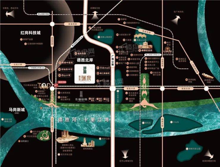 A2: 项目拥有双地铁TOD优势,规划中的佛山地铁11号线与广州地铁26号线将在德胜西路站交汇,直线距离约500米。此外,还有投资87亿的过江隧道和完善的立体路网,45分钟即可覆盖广佛核心区。