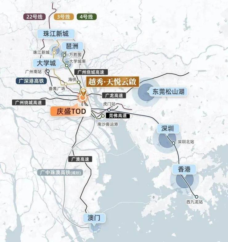 越秀天悦云啟位于广州市南沙区庆盛枢纽区块,正对香港科技大学(广州校区),这一地理位置不仅赋予了项目独特的学术氛围,也预示着未来的发展潜力。随着粤港澳大湾区规划的逐步推进,南沙作为三大自贸区之一的地位日益凸显,而庆盛则作为南沙的重要组成部分,正在迅速崛起。
