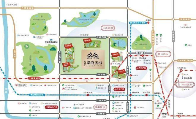 交通路网成熟高效。项目周边4轨道+4高速格局已经成型。临近三水北站、三水南站,广佛肇城际轨道让通勤更便捷。佛山地铁4号线在建,三水有轨电车T20规划中,未来轨道交通会进一步加密。4高速包括广三、广昆、佛山一环、广州绕城,5分钟上高速,快速接驳湾区各大城市。日常去三水中心或进广州都很顺畅,广佛生活圈基本无缝连接。