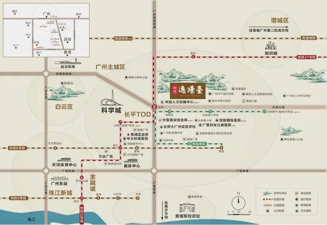 黄埔的交通规划相当给力,有 2 国铁 + 4 城际 + 15 地铁 + 6 有轨。逸璟台周边交通十分便捷,21 号线长平地铁站联通 6 号线、7 号线二期、23 号线,20 分钟就能通达天河;项目出门就是有轨电车 1 号线的长岭居小学站;通过广汕公路、京港澳高速、济广高速可以快速畅达全城。不仅如此,地铁 21 号线能快速直达天河,家门口还有黄埔第一条有轨电车,全国首条高速地铁也在强势规划中,未来到广州东站只需 9 分钟。