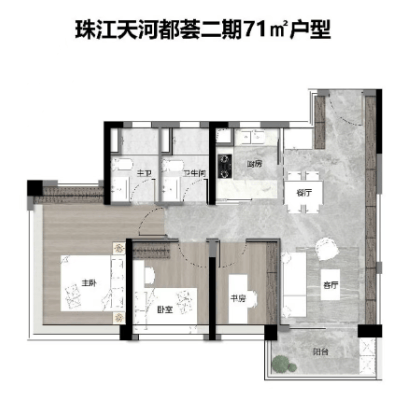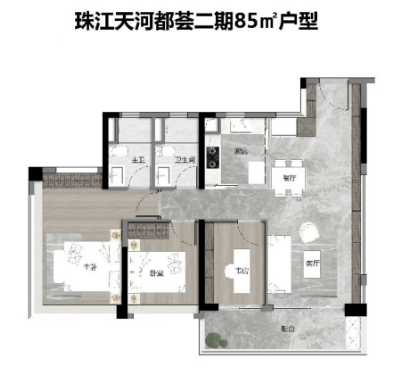 珠江天河都荟是天河智慧城首个超新规高使用率项目,使用率均超120%,在300万级市场中极具颠覆性。主力户型覆盖72㎡-123㎡区间,全系主打南向布局,最小72㎡即可实现南向三房两卫,实用性极强。72㎡三房两卫户型四开间朝南,LDKG一体化设计,双阳台配置,空间百变灵活;84㎡三房两卫进一步放大尺度,采光通风更优;104㎡四房两卫实现双主套+大面宽设计,适合三代同堂;123㎡四房两卫则拥有更奢阔的主卧套房与多功能空间,满足改善需求。板楼产品额外提供105-143㎡选择,层高3.0-3.3米带来豪宅级空间感。所有户型充分利用新规红利,通过飘窗、阳台赠送、梁下空间优化等手段,实现超高得房率,真正做到“买多少住多少、甚至住更多”。在300万起价区间做到全南向+高使用率+智能交付,珠江天河都荟堪称天河东刚需与首改的“卷王”代表。