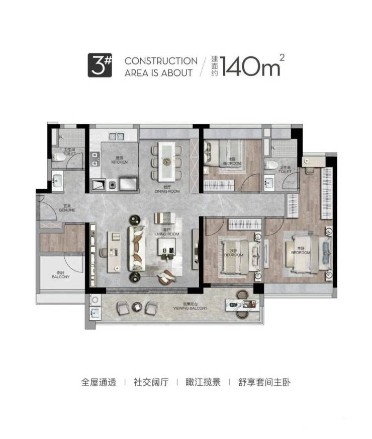 如此硬核的指标,注定项目在户型设计上,可以实现户户朝南、户户瞰江、采光通风最大化,将舒适度拉到满格。