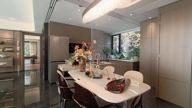 这款户型采用LDKB一体化设计(客厅、餐厅、厨房、阳台一体化),270°双边采光,南北对流,空间通透感堪比大平层。客厅宽敞明亮,开间达4米,平时家人可以在客厅看电视、聊天、玩耍,也能举办小型的家庭聚会,空间十分充足;餐厅和厨房相连,做饭的时候,能随时和客厅的家人互动,不用孤单,而且上菜也十分方便,不用来回奔波。