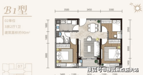 90㎡3房2卫:总价约360万,三房设计满足家庭成长需求。动静分区明确,主卧配备独立卫生间;客厅连接景观阳台,采光充足;餐厅与厨房紧密相连,方便就餐;次卧可作为儿童房、书房或客房使用,灵活多变。