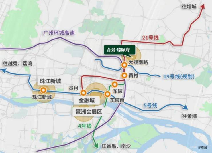 A:项目周边地铁21号线智慧城站(约1.5公里)、4号线黄村站(约2公里)及规划中的19号线大观南站(2025年开通)形成立体交通网;广佛东环线(在建)与穗莞深城际轨道(在建)直通白云机场、广州南站,实测通勤效率提升40%。