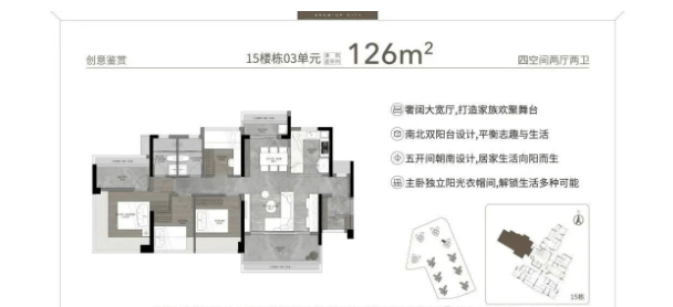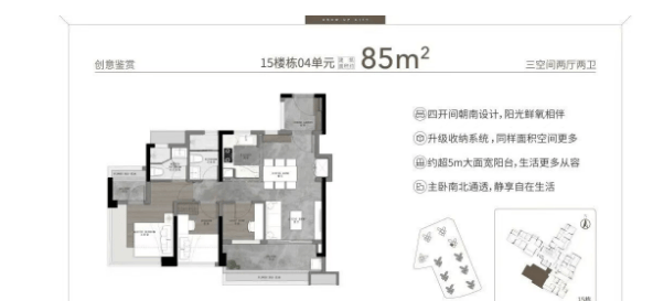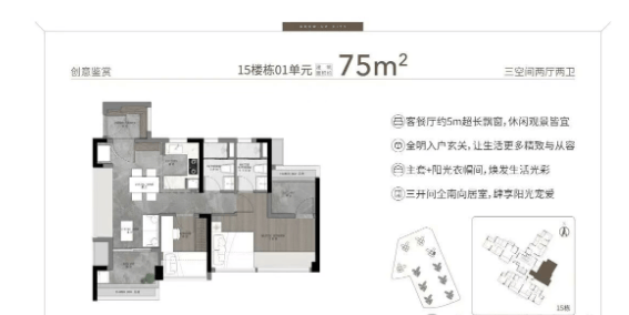 目前,越秀大学星汇锦城在售的主要为二期的8-15栋,共计33层高,采用2梯5户的设计。预计于2026年底交付使用。户型方面,提供了从76平方米至125平方米不等的三房至四房选择,所有户型均实现了超100%的使用率,并采用了全南向设计,确保每个房间都能享受到充足的阳光。例如,约75平方米的三房两厅两卫户型,四开间朝东南,客厅赠送长约5米的飘窗,适合三口之家;而约124平方米的四房两厅两卫户型,则采用南北对流设计,双阳台布局,主卧望向二期园林中轴,景观视野极佳。无论是首次置业还是改善型购房,这里都有合适的户型可供选择。