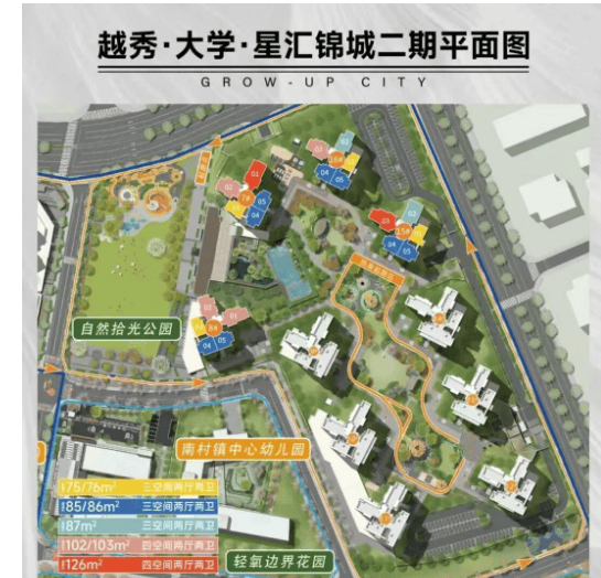 越秀大学星汇锦城位于广州市番禺区南村板块,临近国际创新城,是一个旨在为年轻购房者提供高性价比住宅的项目。该项目由知名开发商越秀地产开发,总占地面积约26万平方米,二期占地约为4.6万平方米,总建筑面积达到约22.8万平方米。项目规划了17栋住宅楼,其中二期包含10栋,总共提供2282户住房(二期1430户),并拥有超高的使用率,达到了100%以上。此外,项目还配备了丰富的社区设施,包括一所9班规模的幼儿园、42班小学和36班初中,以及一个占地约8500平方米的中央公园,为居民提供了优质的生活环境。