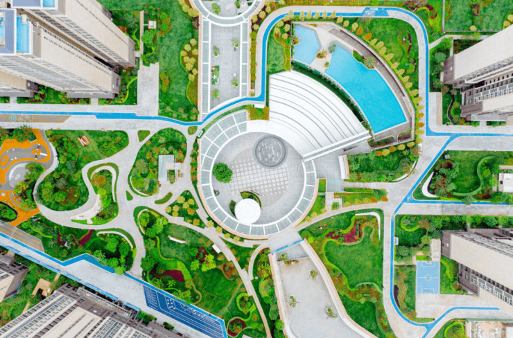 社区内规划约26万㎡立体空中园林,相当于36个标准足球场,内含5大儿童乐园(含2000㎡超大亲子空间)、泳池、篮球场、2.6km健康跑道,全龄活动空间一应俱全。