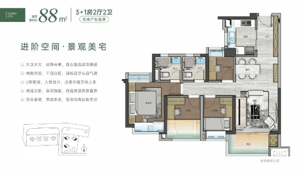88㎡四房:紧凑实用,功能齐全,性价比高。