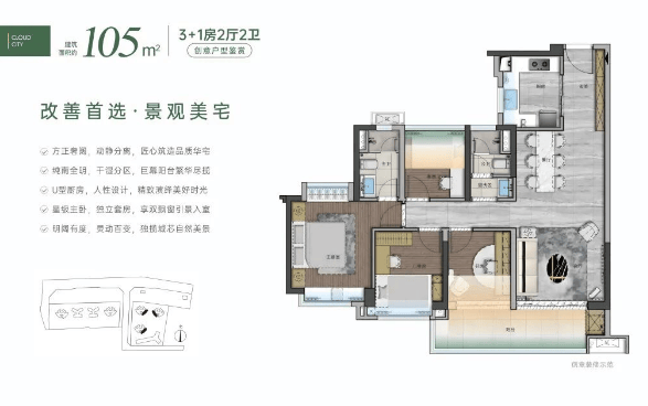 105㎡四房:宽敞舒适,布局合理,满足大家庭需求。