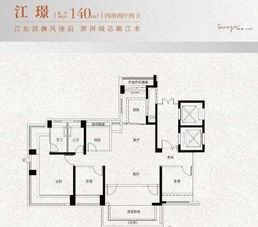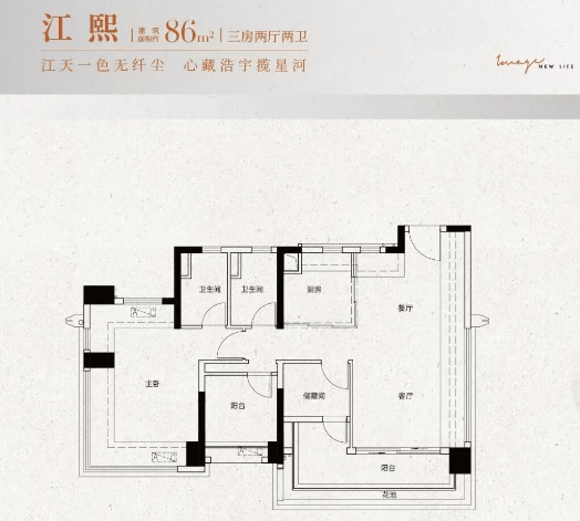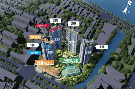 提供多样化的户型选择,包括建面约86㎡、120㎡、140㎡等,其中80%的单位都可以观赏到江景。所有户型均采用全南向设计,确保居住舒适度,特别是86㎡户型也配置了超大的观景阳台,宽度超过6米,提升了居住体验。