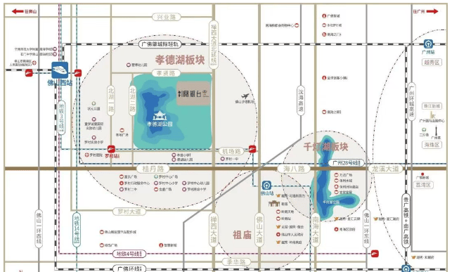 项目毗邻佛山西站这一湾区核芯交通枢纽,拥有2高铁(贵广高铁、南广高铁)、2轻轨(广佛肇城际、广佛环线)和4地铁(佛山地铁3号线、4号线、14号线,广州地铁28号线)构成的立体交通网络。其中,项目距离在建的佛山地铁3号线罗村站约800米,可快速到达禅城、桂城等地。此外,从项目出发,仅需15分钟即可抵达千灯湖CBD,20分钟可达祖庙,30分钟内抵达广州荔湾,轻松融入粤港澳大湾区的生活圈。