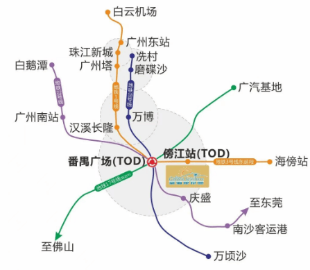 通过3号线,1站直达番禺广场、2站到达万博CBD、3站至广州南站及琶洲、4站可达珠江新城。