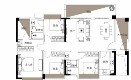 85-135平方米奢装洋房:超国标好房子,层高3.0-3.3米,高拓户型面积,超大入户花园,打造N+1百变空间价值。
