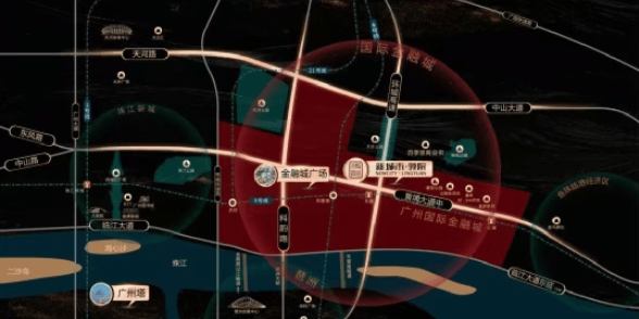 新城市领院位于黄埔大道北侧,南向直面珠江,与金融城东区——即未来科技创新集聚区——直线距离仅约300米。项目与热销红盘兰亭盛荟仅一路之隔,共享区域成熟配套。