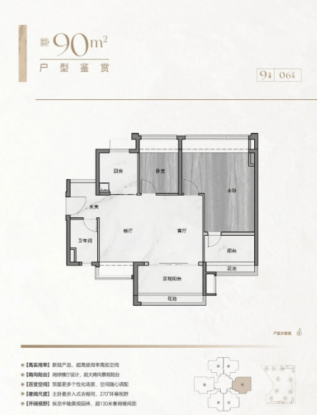 90平方米三房两卫:南北对流设计,空气流通良好,居住体验佳。