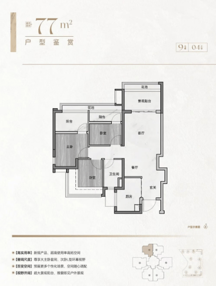 低首付:如5万元即可购买77平方米精装户型,适合首付预算不多的家庭。