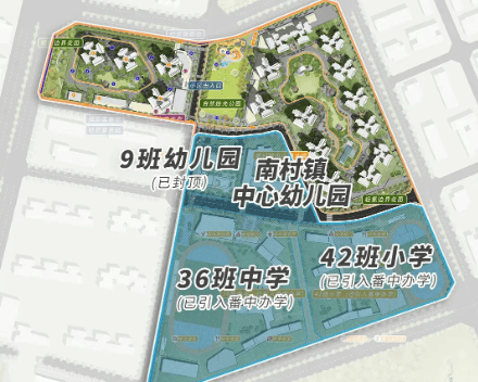 项目内设有一所9班幼儿园、42班小学和36班初中,共计提供3600个学位,超过了业主户数,确保每个孩子都能享受到优质教育资源。学校由广东番禺中学教育集团管理,师资力量雄厚,教学质量有保障。