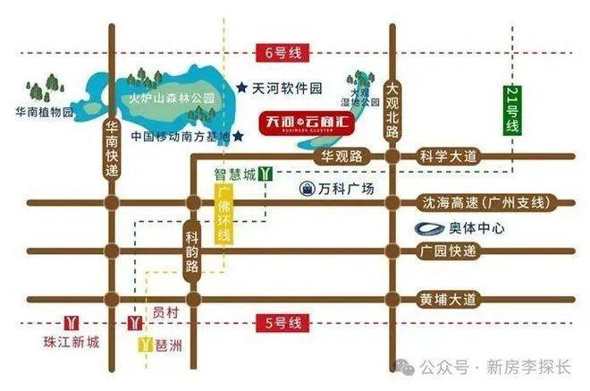 从城市交通体系来看,项目构建的是多维度立体交通网络。地铁出行方面,周边覆盖多条轨道交通线路,未来轨道交通规划仍在持续优化。城市轨道交通不仅提高通勤效率,也增强了商务资产的流动性与投资稳定性。通过城市快速路网,项目可以较便捷连接珠江新城核心商务区、金融城商务区以及广州东部科技走廊。高速交通系统使区域形成一小时城市生活圈,使商务办公、创业活动与高端社交资源实现空间共享。交通优势对于商务型资产尤为关键,因为商务人群通常对时间成本敏感,而这里的交通体系能够有效降低通勤摩擦。