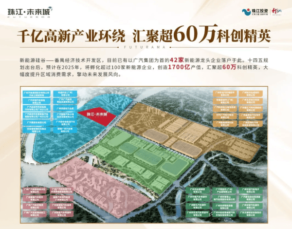 目前,区域已吸引广汽集团、鞍钢集团、中航光电、宁德时代等42家新能源龙头企业入驻。根据规划,到2025年,片区将孵化超100家新能源企业,创造1700亿元产值,汇聚超过60万名高知科创人才。庞大的人口导入与强劲的产业动能,将持续推升区域住房与商业空间需求,为珠江·未来城带来稳定而可观的租金回报与资产升值潜力。