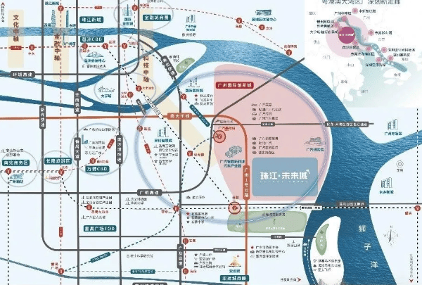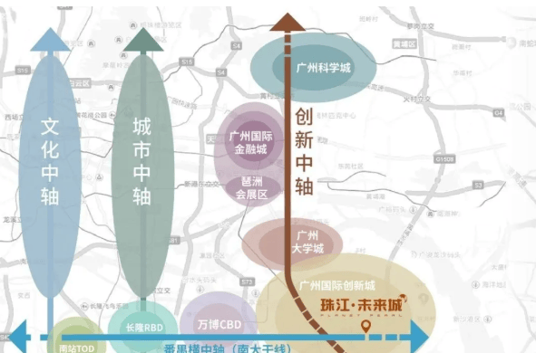 珠江·未来城所处的位置,堪称广州城市发展版图中的“黄金眼”。项目位于番禺国际创新城—汽车城板块,地处广深科创走廊的关键节点,恰好位于琶洲CBD、广州大学城与广州国际创新城三大科创高地构成的“黄金三角”中心。这一区位优势,使其天然成为承接大学城科研成果转化、链接珠江口两岸协同发展的重要枢纽。