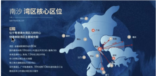 项目位于南沙明珠湾板块横沥岛核心区域。明珠湾作为南沙重点打造的金融与商务功能区,承载着粤港澳大湾区国际金融合作、总部经济与高端服务业集聚的战略任务。横沥岛作为明珠湾起步区的重要组成部分,其规划层级与资源投放力度在南沙各片区中具有显著优势。