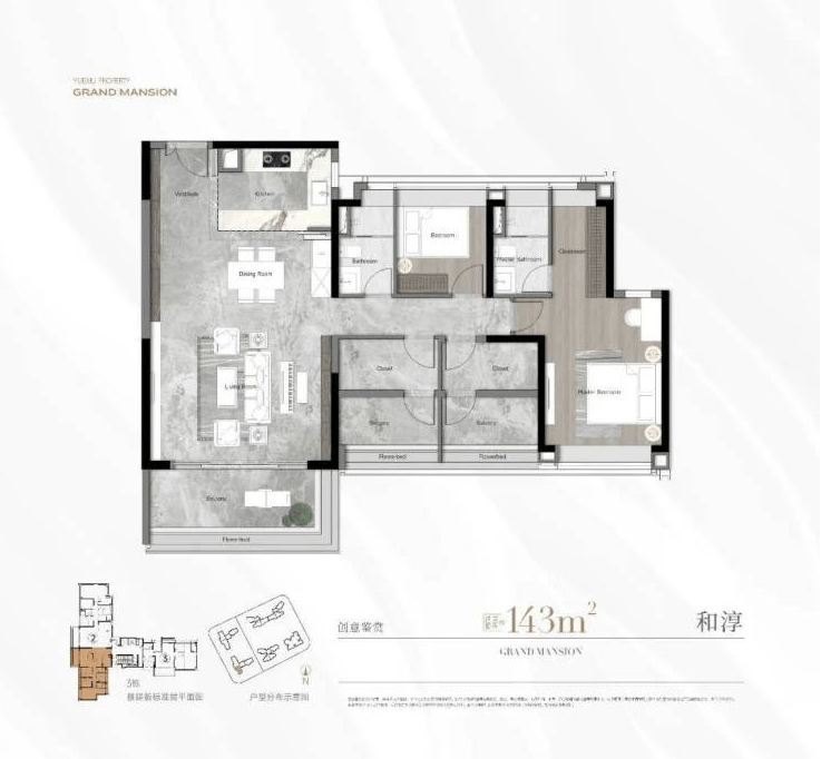 首先是143平方米的四房两厅两卫户型,总价849万元起。这款户型采用了2梯3户的布局,南向望江,四开间朝南,采光面极宽。南北双阳台的设计是其一大亮点,南向的观景阳台直面珠江,视野开阔,是品茶、赏花、远眺的绝佳之地;北向的生活阳台则满足了洗衣、晾晒、收纳等实用功能,实现了美观与实用的完美分离。主卧采用套房设计,配备了独立卫浴和飘窗,保证了主人的私密空间和舒适体验。另外三个房间布局合理,可作为儿童房、老人房或书房,满足三代同堂家庭的居住需求。整体动线流畅,动静分区明确,既保证了家庭成员的互动,又互不干扰。