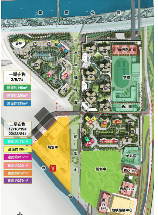 A3:二期在售户型为 142-327㎡,包含 176㎡、196㎡、215㎡、220㎡、232㎡等,容积率仅 2.0,仅规划 8 栋住宅,预留大面积园林,居住密度低、舒适度高,适合改善型家庭。