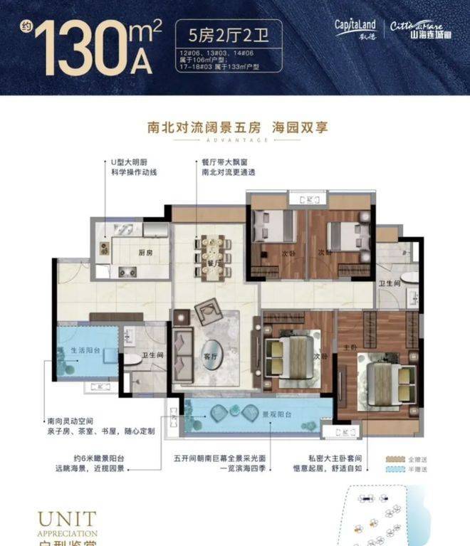 户型设计合理,得房率在 80 - 82% 。目前在售二期多个面积段户型,85 平三房两厅一卫,91/106 平三房两厅两卫,130 平有五房和四房户型,135 平四房两厅两卫。每个户型空间布局都比较合理,能满足不同家庭需求。像 85 平三房总价约 160 万起,叠墅总价 680 万起,性价比高,花较少的钱能享受高品质居住空间。