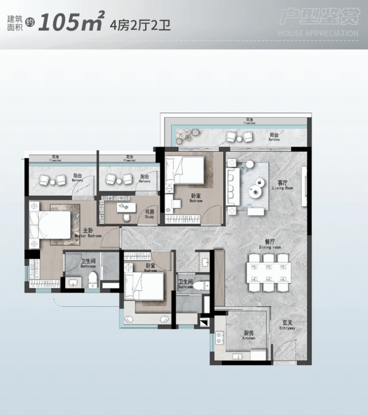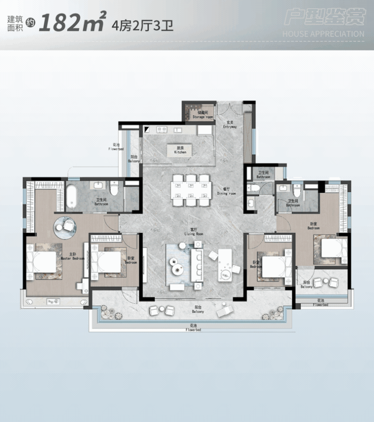 对于追求更大空间的家庭,建面约182㎡的双主套户型则是理想之选。该户型拥有超大的面宽和进深,每个房间都宽敞明亮,功能分区明确。主卧套房配备了独立的衣帽间和卫生间,提升了居住的尊贵感。次卧和儿童房也设计得十分贴心,满足了不同家庭成员的个性化需求。此外,该户型还预留了多功能空间,可以根据家庭需要进行灵活改造,如书房、影音室、健身区等,极大地拓展了生活的可能性。