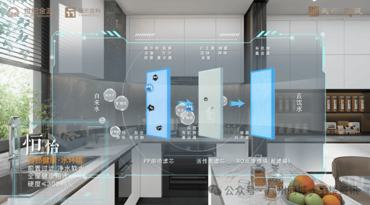 在装修配套方面,项目采用了智能化精装交付标准,配备了分户式七恒全屋气候系统、国际一线品牌家电卫浴等高端配置。七恒系统是该项目的核心亮点之一,它能够实现恒温、恒湿、恒氧、恒静、恒洁、恒智、恒怡的健康生活环境。这一系统通过综合调控,有效对抗广州的回南天、夏季闷热和临街噪音等常见问题,解决了传统住宅的痛点。与国际一线品牌的家电卫浴搭配,不仅提升了居住的舒适度,更彰显了业主的身份品味。