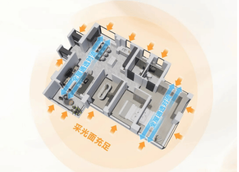 143㎡的四房两厅三卫户型,更是将南北对流的设计发挥到极致。客厅开间约4.5米,空间宽敞明亮,无论是家庭聚会还是朋友来访,都能轻松容纳。该户型还带有入户玄关,增加了收纳空间的同时,也提升了居住的私密性。得房率超120%,让业主花同样的钱,享受更大的使用空间。