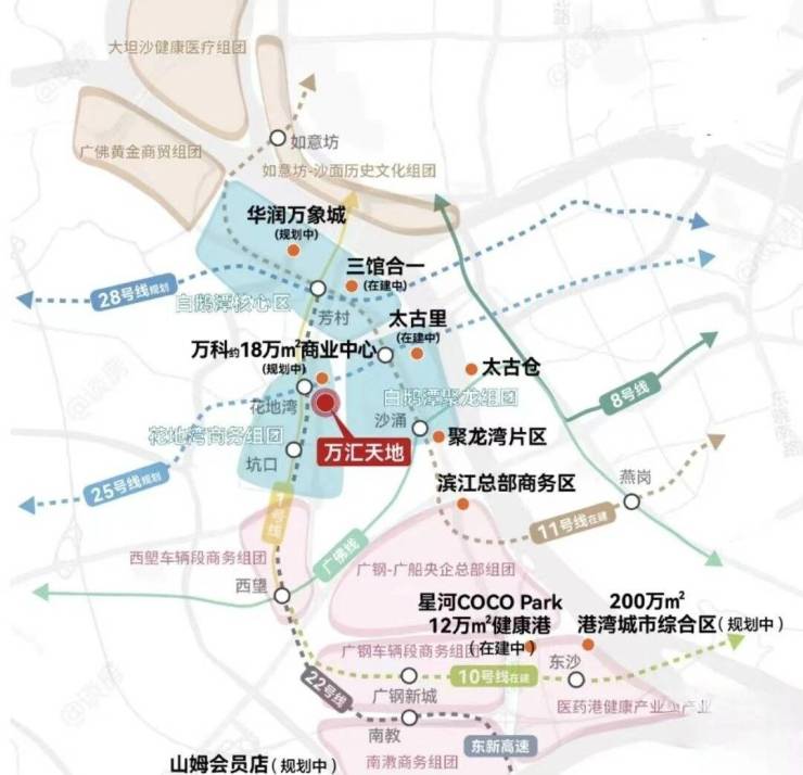 项目坐落于荔湾花地湾板块,地处珠江西岸CAZ中央活力区核心,依托花地湾旧改规划,打造集高品质居住、休闲娱乐、商业配套于一体的综合性社区。花地湾旧改作为广州过去十年、未来十年难以复制的城市更新手笔,整体规模相当于1/6个珠江新城,货值超1500亿,远超天河+越秀当年重点项目总投资额,未来将与白鹅潭核心区、聚龙组团形成“产、商、居”黄金三极格局,推动人城产深度融合,助力广州城市副中心建设。